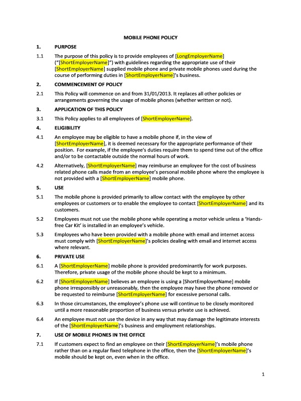This policy is designed for Councils who wish to provide mobile phones to employees for work-related purposes, or where Council wishes to reimburse employees for work-related phone calls made from personal mobile phones.