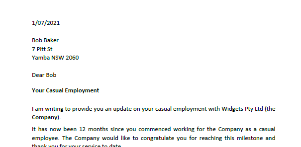 Employers looking to offer causal employees the option to convert may wish to use the Casual Conversion - ‘Offer’ Letter to Employee.