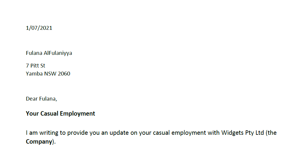 This letter is to offer eligible casual employees the option to convert to full-time or part-time employment.
