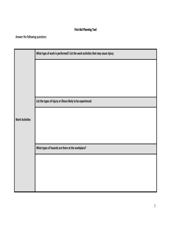 This checklist will enable you to identify the first aid needs for your business. Complete the questions and measure the responses against the requirements in your State or Territory. This information is available from the website of your local regulator e.g WorkCover.