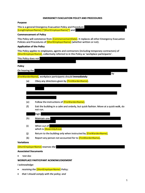 The policy and procedure should be communicated to all workplace participants with regular reminders given. Workplace participants should be trained in the procedures to be followed in the event of an emergency and these procedures should be tested. Evacuation drills are a very important part of the training of workplace participants in emergency evacuation procedures.