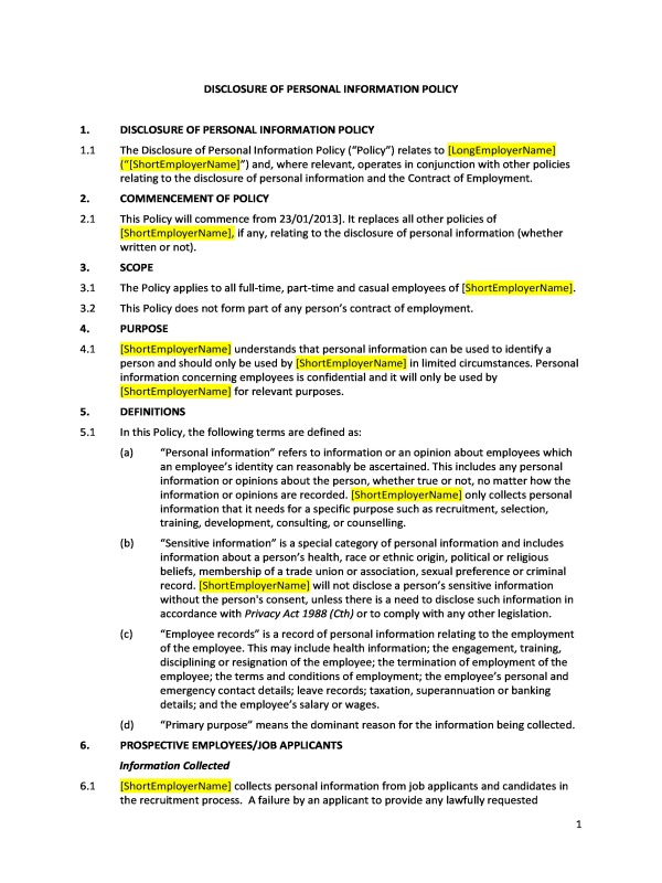 Collecting personal information concerning employees or prospective employees is a necessary aspect of running a business. Personal information is information that can identify an individual, and employers should handle such information with care and ensure that disclosure is not contrary to obligations contained under privacy laws.