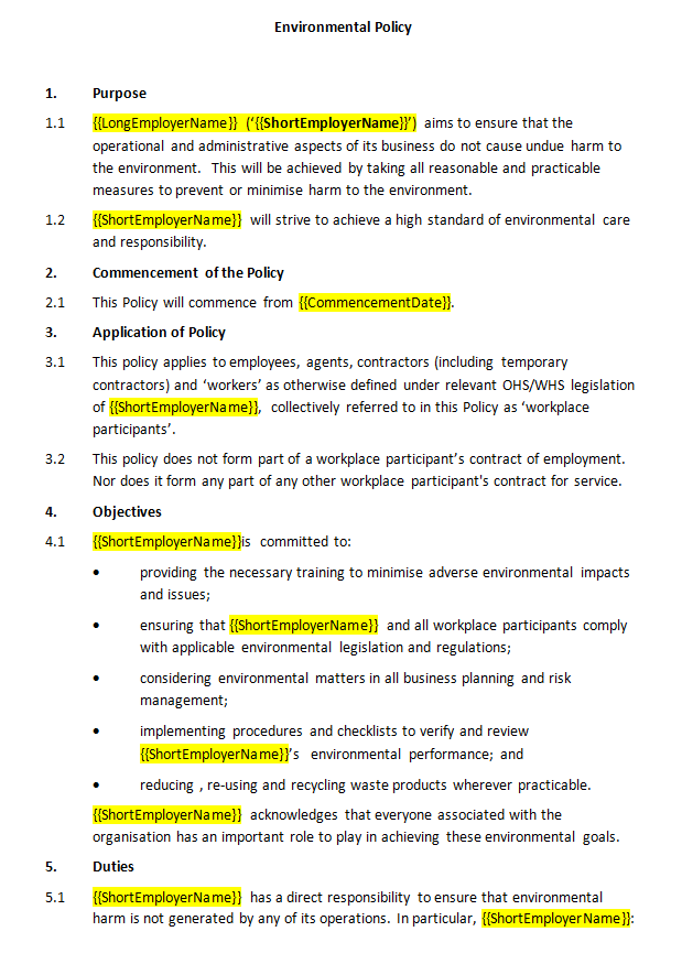 The policy sets out the workers’ obligations to the environment.