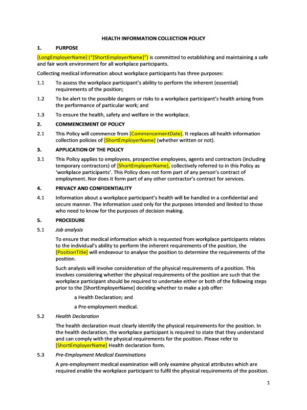 As long as there is a relevant connection with the essential requirements of the job, the collection of health information about a job candidate (which may include an existing employee) is a legitimate step in the recruitment and selection process. Unless there is a relevant connection, employers should avoid collecting health information about job candidates as there are legal risks — particularly under disability discrimination law — where irrelevant information is relied upon by the employer.