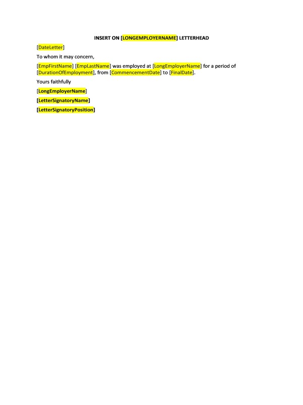 The reference you will create using this service is a generic 'to whom it may concern' document, with some options included so you can more closely adapt it to your needs. You may still need to amend the reference once it is completed to suit your specific requirements and/or to comply with any relevant industrial instruments, workplace policies, or procedures.