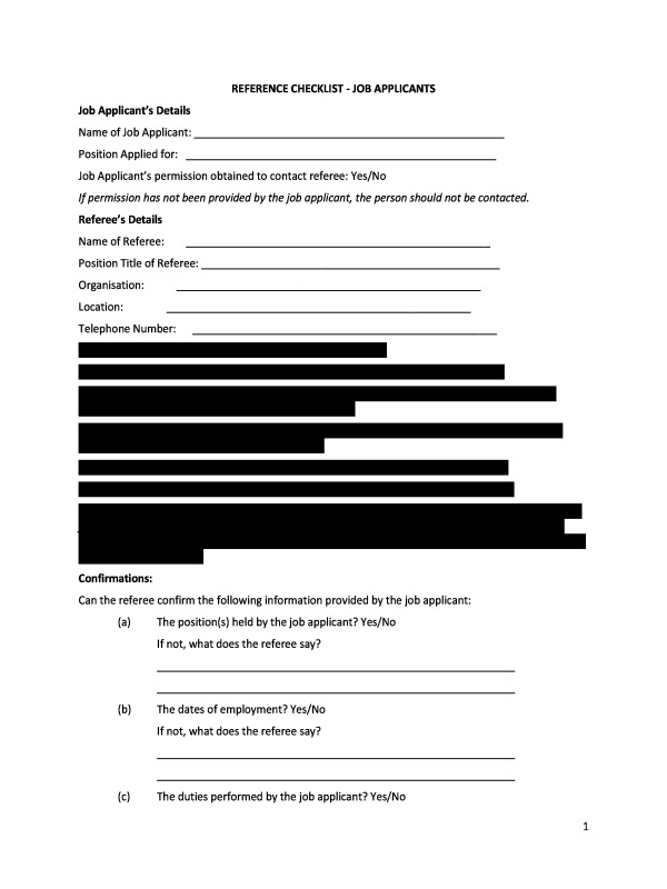 It is important to ensure that the referee is in a position to give you a proper assessment of the job applicant’s capabilities for the job for which he/she has applied. Preferably, the referee should also be a person who has had recent contact with the person in a working environment. The form contains a series of questions relating to: