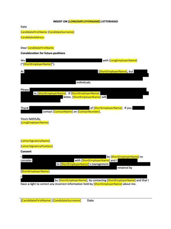 The Act and APPs require the employer to obtain the express consent of a job applicant to keep the individual’s application on file to be considered for other positions within the organisation. The job applicant’s consent should not be presumed and ideally should be obtained in writing.