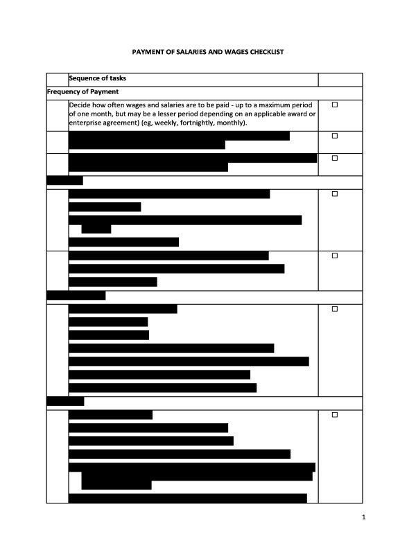 Specifically, the checklist addresses frequency of payment, deductions, employee records, pay records, superannuation contributions into defined contribution schemes, and employee pay slips.