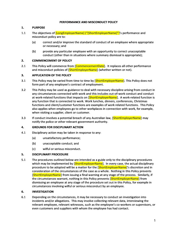 Employers with fewer than 15 employees are also able to utilise the Small Business Fair Dismissal Code when terminating an employee’s employment. However, the Performance and Misconduct Policy offers more comprehensive guidance and can be used by both small and large employers.