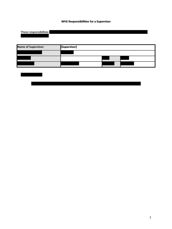 The WHS Responsibilities For Supervisor document provides an outline of responsibilities which Supervisors are usually required to perform to assist with compliance with applicable laws.