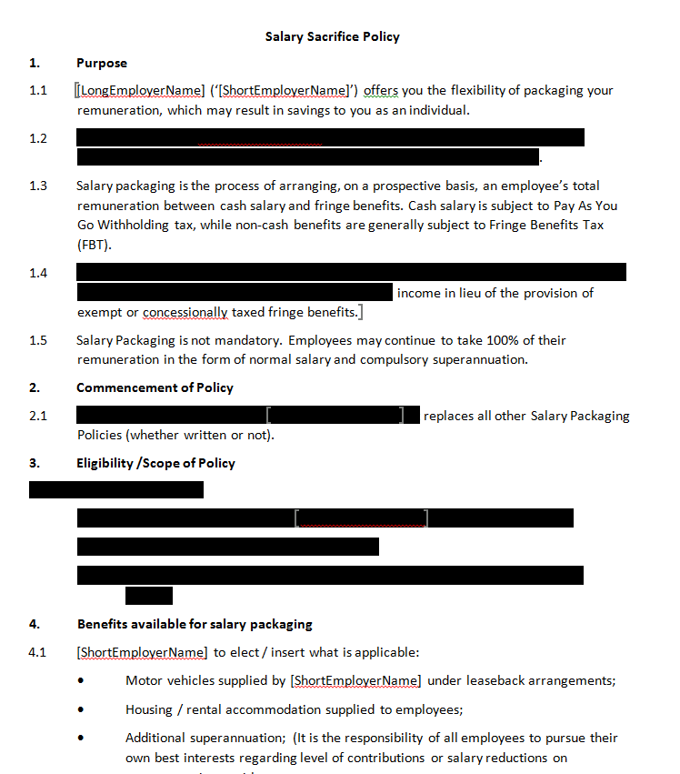 This policy has been developed to assist subscribers in defining the arrangements between the employer and employees eligible to participate. Salary sacrificing is generally offered to salaried employees.